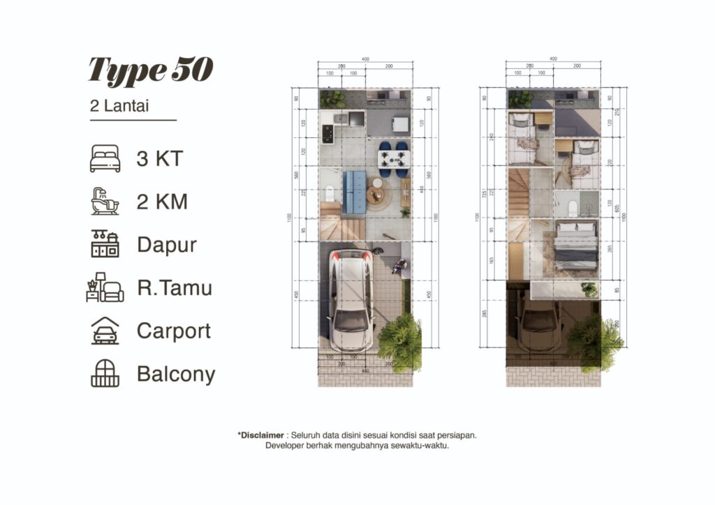 Dibangun dengan konsep 2 lantai dan 3 kamar tidur, hunian ini dirancang untuk kamu yang mendambakan kenyamanan, keindahan, dan fungsionalitas dalam satu paket lengkap.